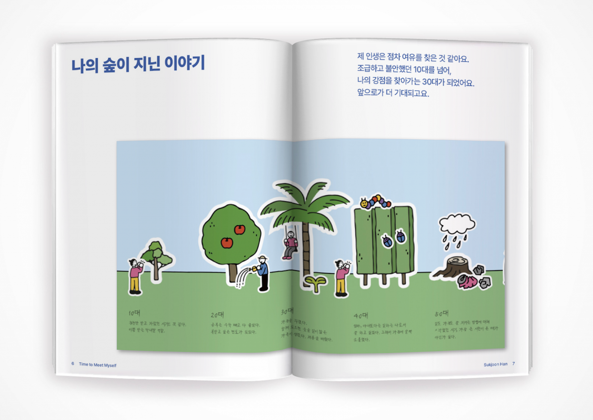 - 효과 : 내가 쓴 글을 통해 스스로 필요한 것과 해야 할 것을 알아차릴 수 있는 시간이 되고, 책자를 동료와 가족과 나눔으로써 내가 가진 영향력에 대해서 생각해 볼 수 있음